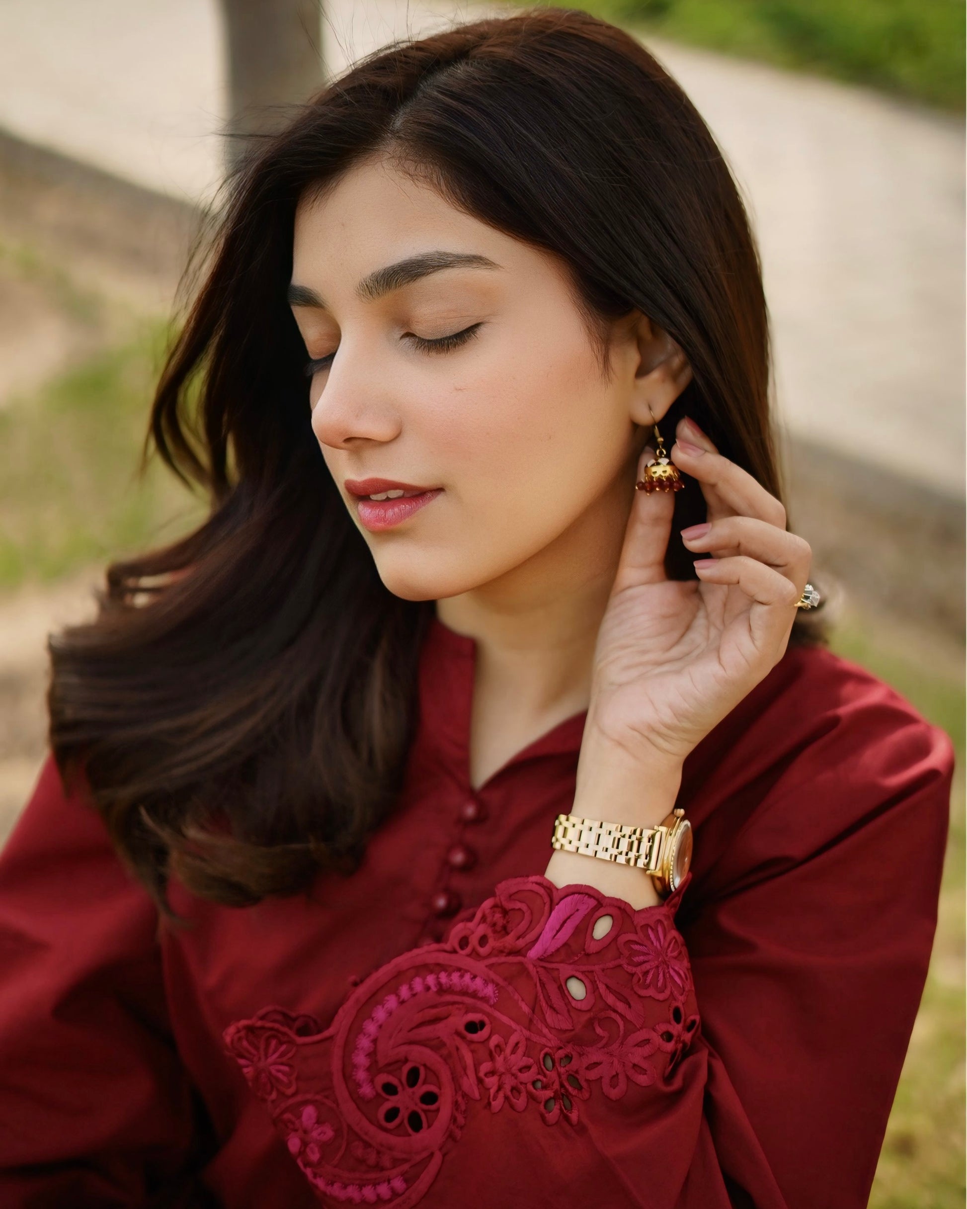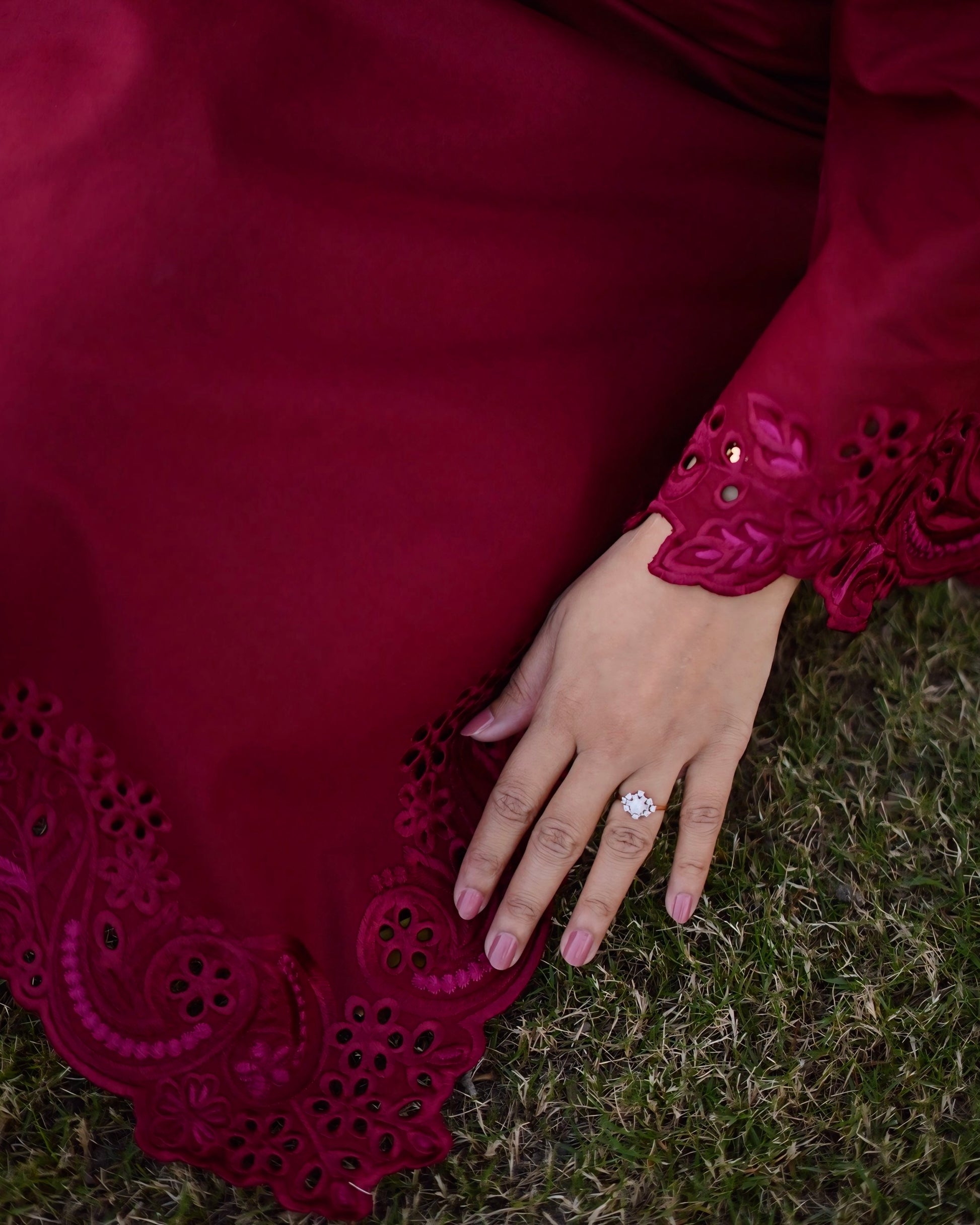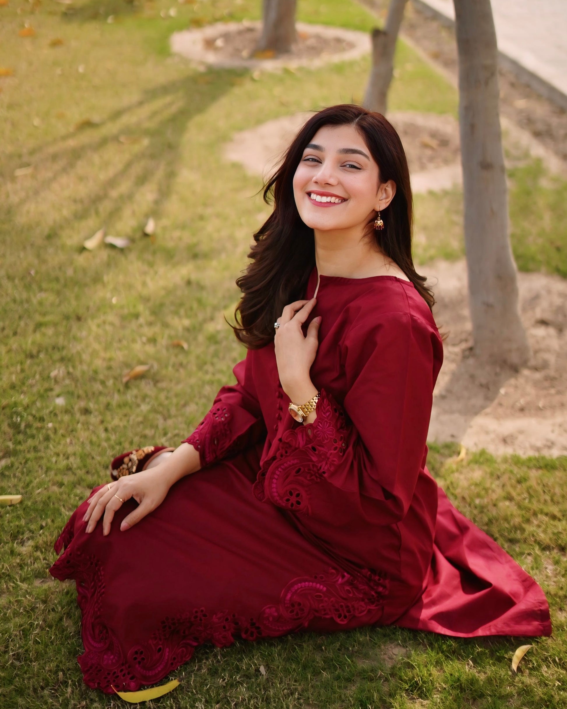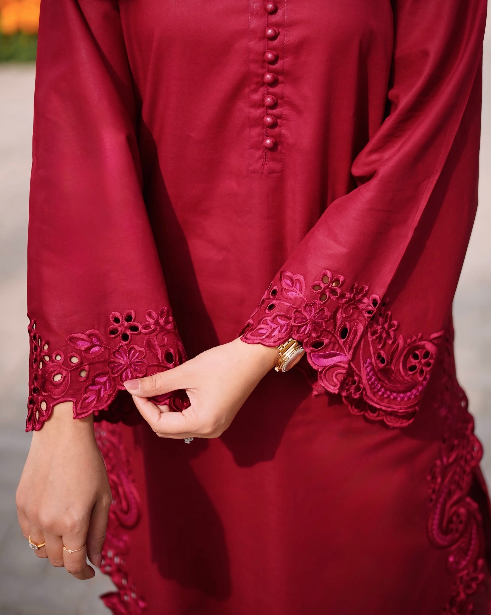 Step into effortless elegance with our sophisticated maroon ensemble. This timeless outfit features refined embroidery on the shirt paired with a straight-cut trouser.
