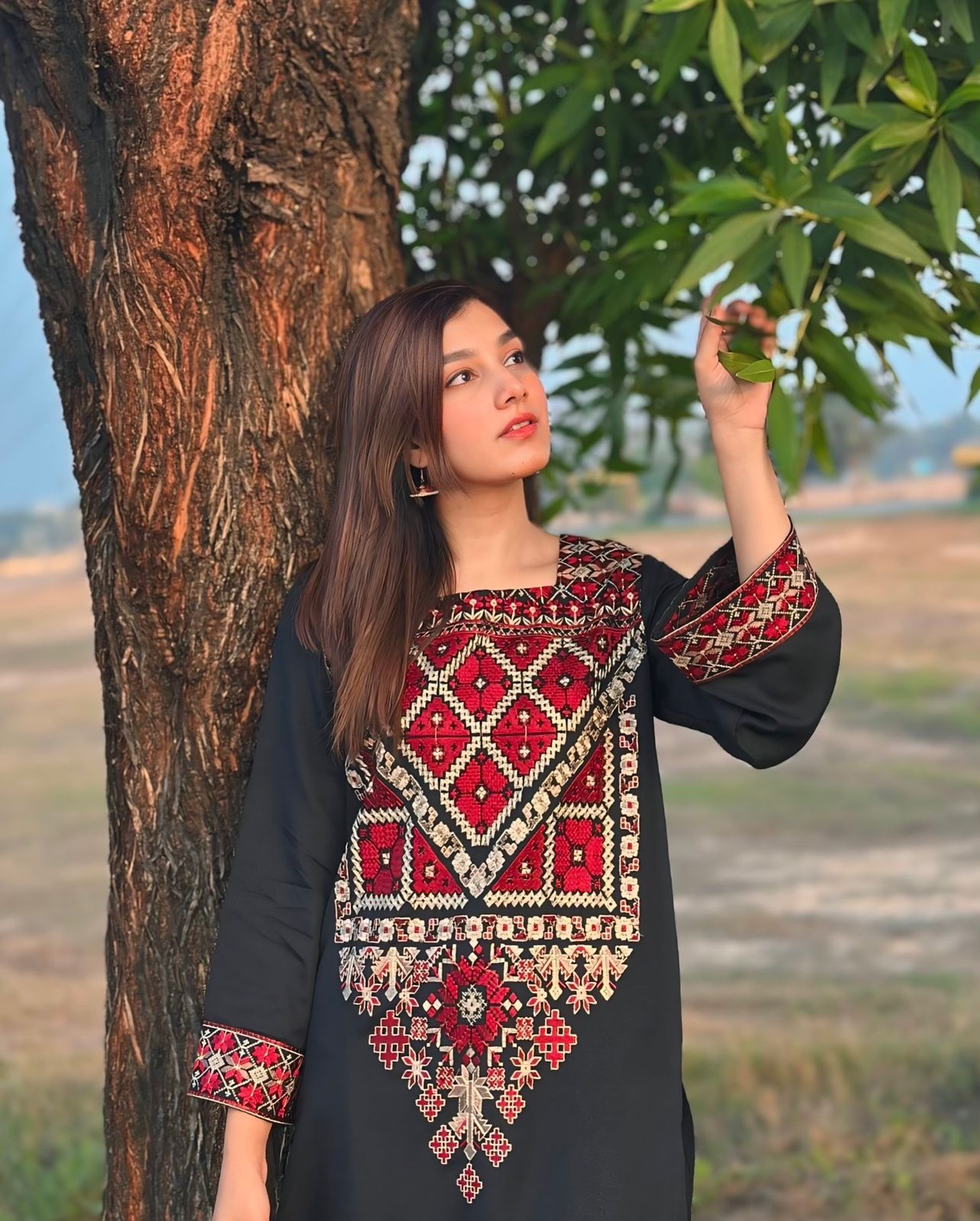 Step into timeless sophistication with this exquisite black two-piece set. Crafted from high-quality Stapple Karandi, the ensemble features an embroidered long shirt that is perfectly paired with loose straight trousers. The delicate embroidery adds depth to the design, making it a striking combination of modern elegance and traditional craftsmanship. Perfect for any formal occasion or evening out, this dress will make you shine.